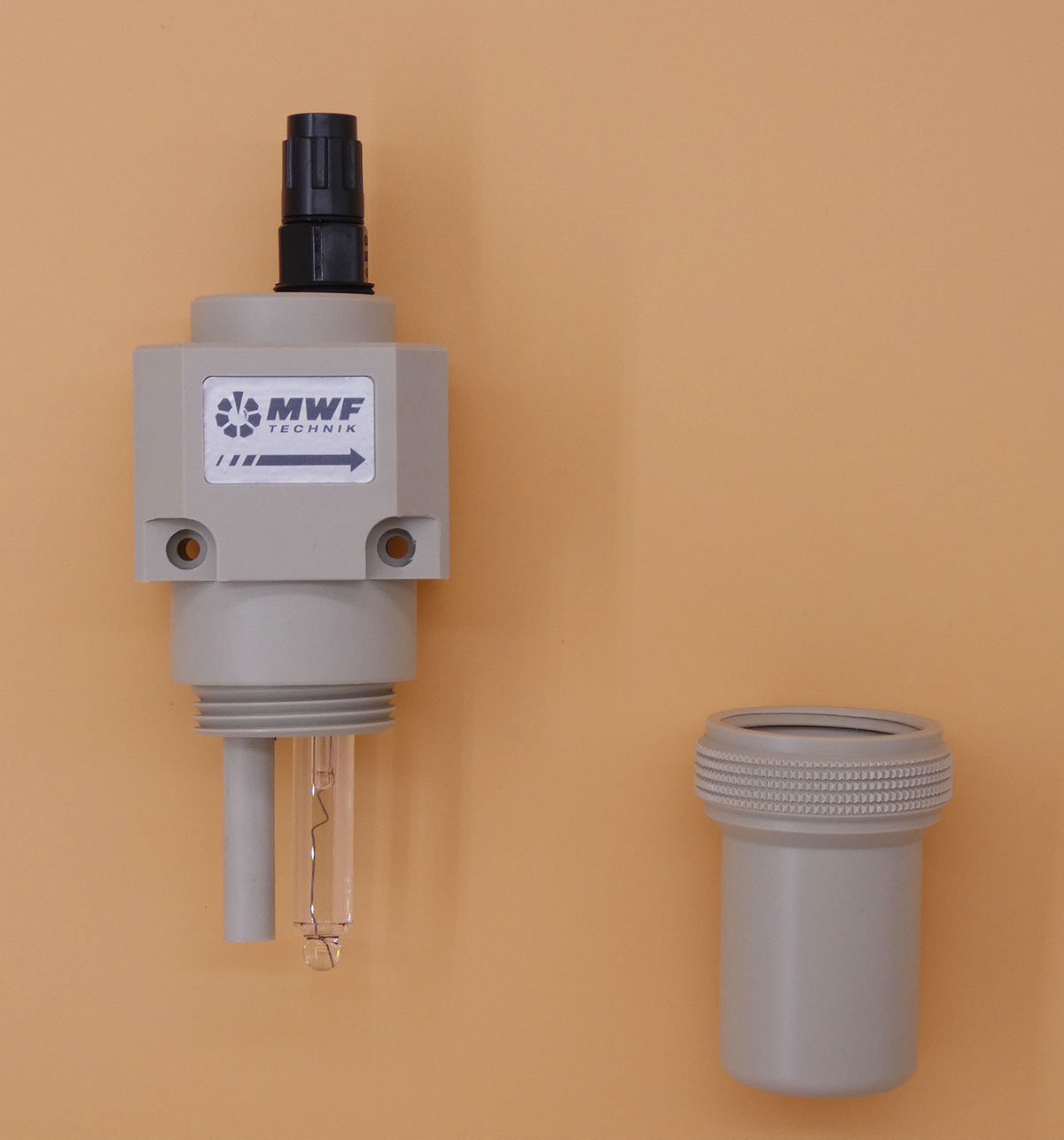 Eine pH-Elektrode ist ein elektrochemischer Sensor, der verwendet wird, um den pH-Wert einer Lösung zu messen. Zum Einbau wird oft Zubehör, wie Elektrodenhalter oder Tauchrohr, verwendet.